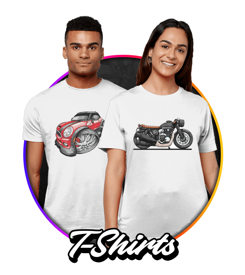 or even better get your vehicle caricatured and then printed onto any of these great items!!